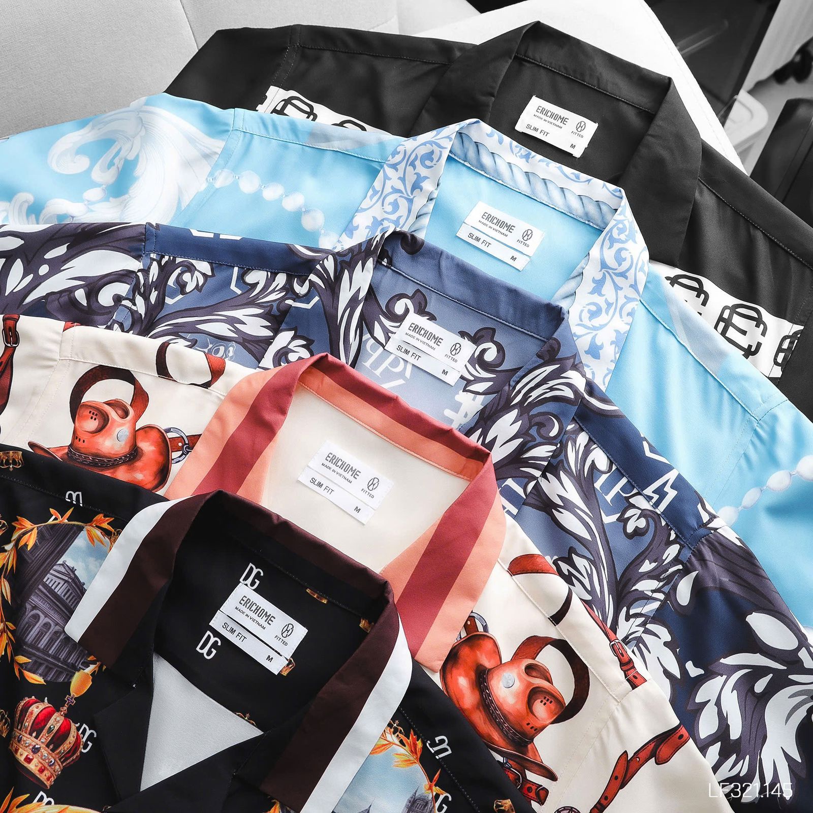 Crafted from a smooth, lightweight, and breathable fabric, these shirts keep you comfortable in warm weather. The modern fit provides a sharp, tailored silhouette, while the open camp (or Cuban) collar offers a laid-back, confident vibe. Express your unique personality with bold designs ranging from graphic text and abstract art to intricate equestrian and baroque-inspired patterns, or build a classic wardrobe with essential solids like black, white, and navy.